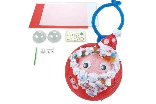 カプセル×1、カラフルミニライト×1、おはながみ(赤・白)×1、クリスマスシール×1、モール(色とりまぜ)×1、目玉シール×2、両面テープ×1